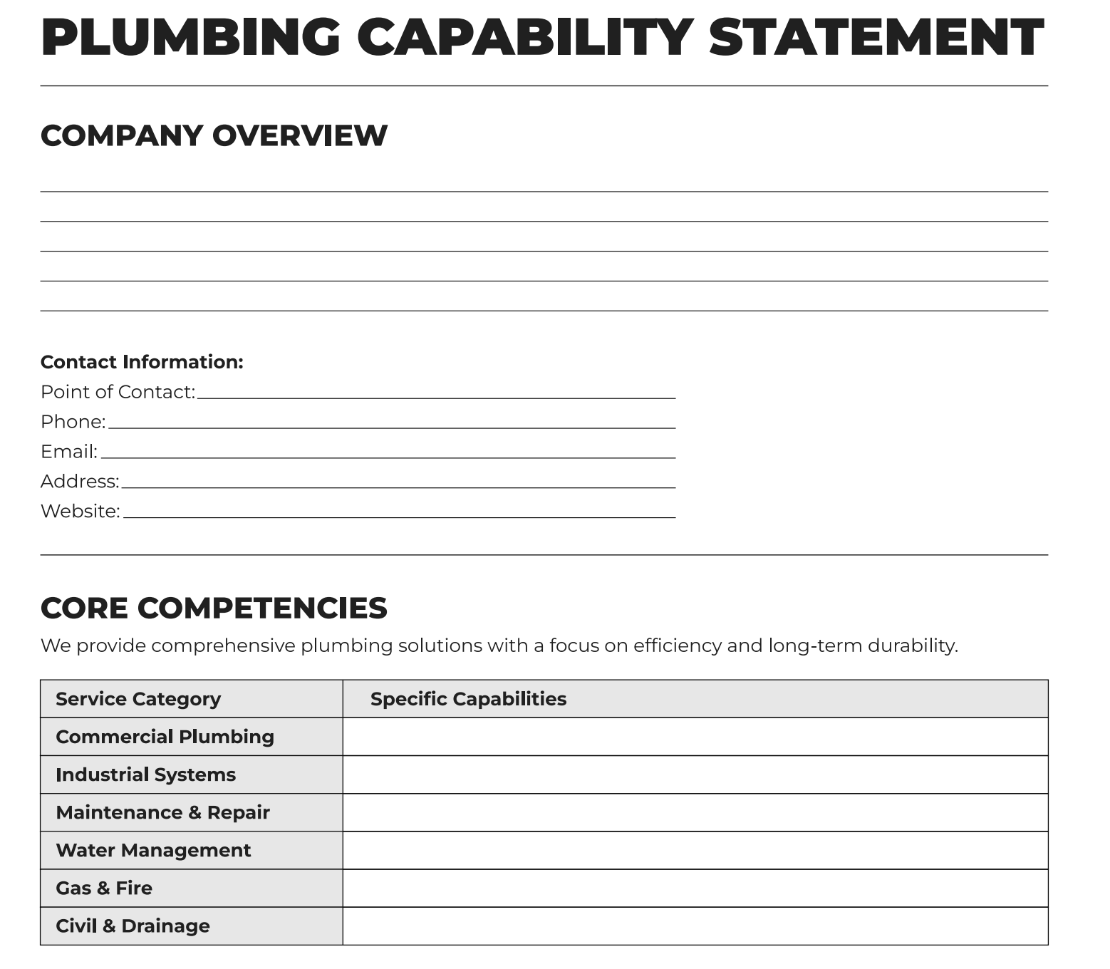 Plumbing businesses use the capability statement to clearly present: